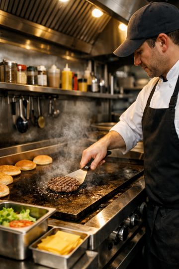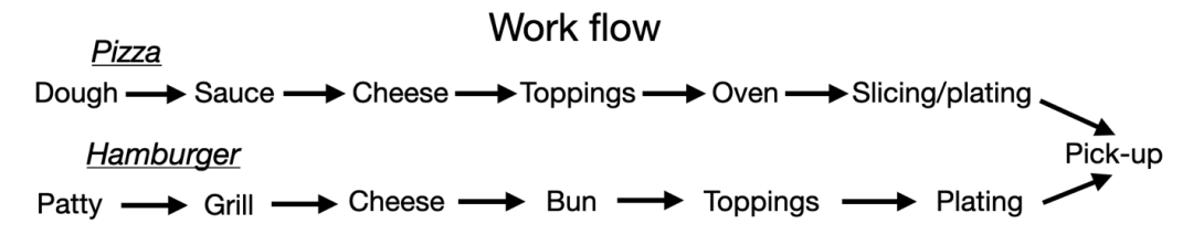 One factor that impacts how fast kitchen staff can prepare food is the kitchen layout. Every step a kitchen staff takes in the process adds time and slows things down. Might not seem like it would make a difference, but it does. Let's say you're preparing a hamburger. What if you have to walk 10 feet to get the hamburger patty to bring to the grill, and then to get the cheese slice for a cheeseburger, you have to walk 8 feet in another direction, and then neither the plate nor the bun are nearby, and finally to take it to the pick-up location you have to go to the other side of the kitchen. All those steps add up to significant time.
