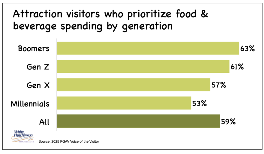 There is a cultural shift in what is considered and valued as out-of-home (OOH) entertainment. More than half of Americans consider themselves foodies (53%). More than two-thirds of people aged 18-44 have foodie behaviors. Foodies love food and are very interested in trying different types. They are on a culinary quest for adventure and discovery and the latest food and beverage trends. Recent surveys by PGAV found that satisfaction with food quality at an attraction was the number one factor influencing guests' intent to return.