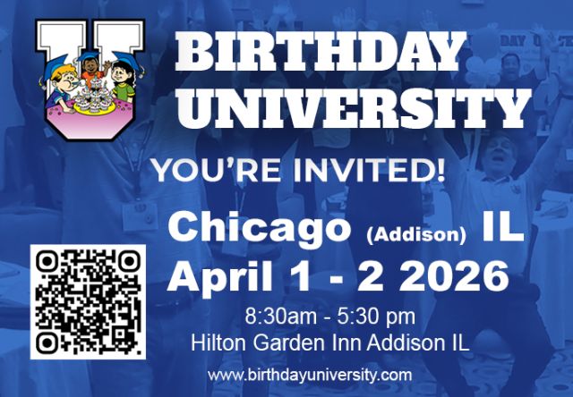 The next Birthday University is April 1st - 2nd in Chicago, IL. Learn more HERE.