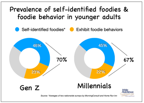 For adult Gen Z and Millennials combined (ages 18-44, the primary target market for most LBEs), about two-thirds, although not all self-identifying as foodies, have food adventurism behaviors - exploring diverse culinary experiences and food trends. We call this group "Food Adventurers."