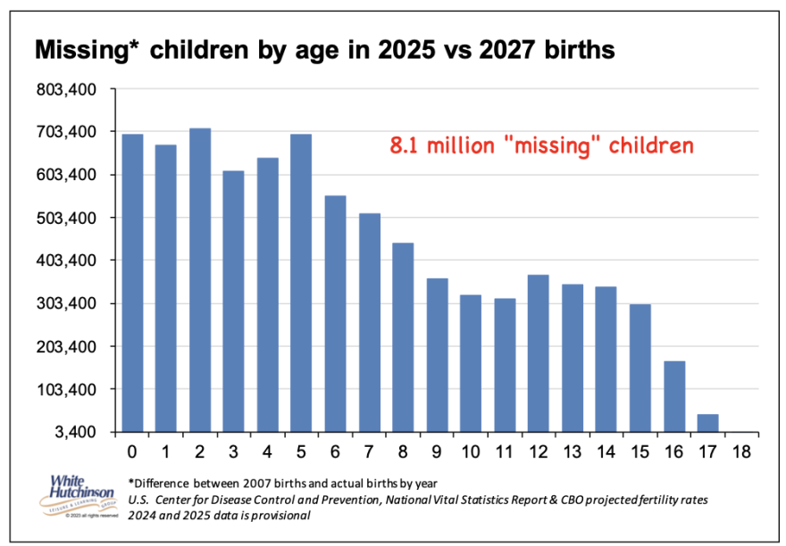 The bad news is that since 2007, births have been steadily declining. If you want to explore this trend further, check out last month's article on the topic HERE, but here's the summary. Preliminary birth data for 2025 shows a 700,000 (16%) decline in births compared to the peak in 2007 (3.6 million in 2025 vs 4.3 million in 2007). Rarely do we get a chance in any industry to look into the future, but birth data gives us a brief peek behind the curtain.