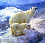 polar bears and sea gulls on Svalbard, a Norwegian Arctic archipelago hundreds