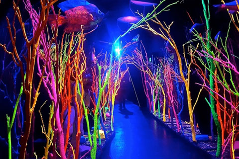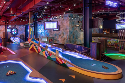 There's been a significant number of dark light miniature golf courses open in the U.S., some as part of family entertainment centers and some as stand alone. Now along comes a high-tech version - 3D dark light indoor miniature golf at Imagine 3D Mini Golf in Gilbert, Arizona. Prices are $6.95 ages 4-9 and $9.95 for age 10+.