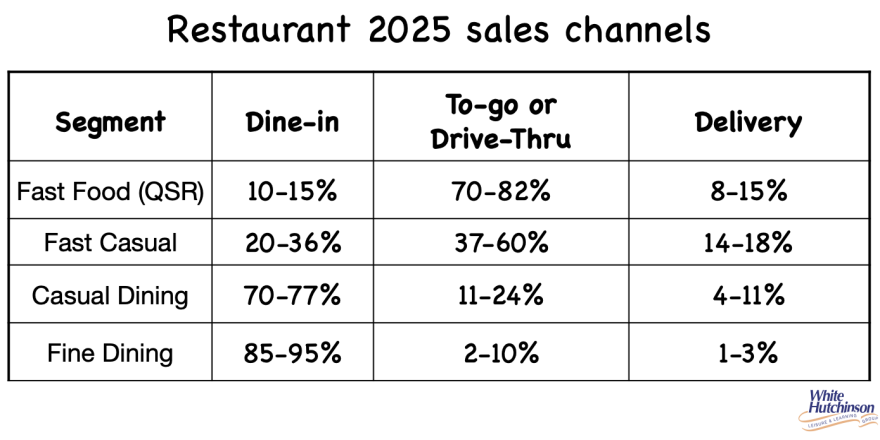 In the restaurant industry, excluding Fine Dining, a large share of sales now comes from off-premises channels, including drive-thru, curbside, to-go, and delivery.